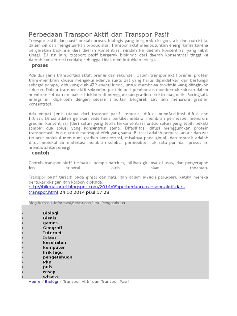 Perbedaan Transpor Aktif Dan Transpor Pasif