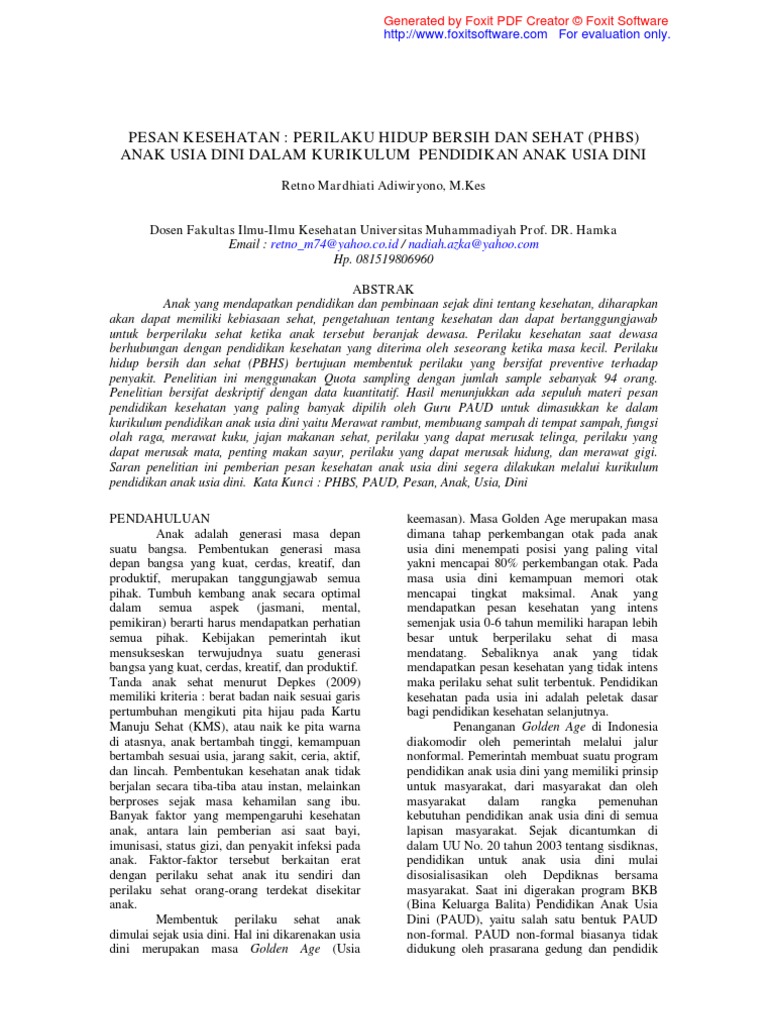Pesan Kesehatan Perilaku Hidup Bersih Dan Sehat (Phbs ...