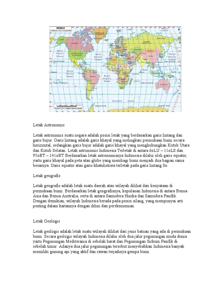 Pengertian letak astronomis, letak astronomis Indonesia, pengaruh, keuntungan, kerugian, dampak positif dan negatif. Berdasarkan letak geografisnya, kepulauan Indonesia di antara Benua Asia dan Benua Australia. Flashcards. batas benua australia. utara : laut timor, laut arafuru, selat torres timur : samudera pasifik, laut tasman, laut coral.