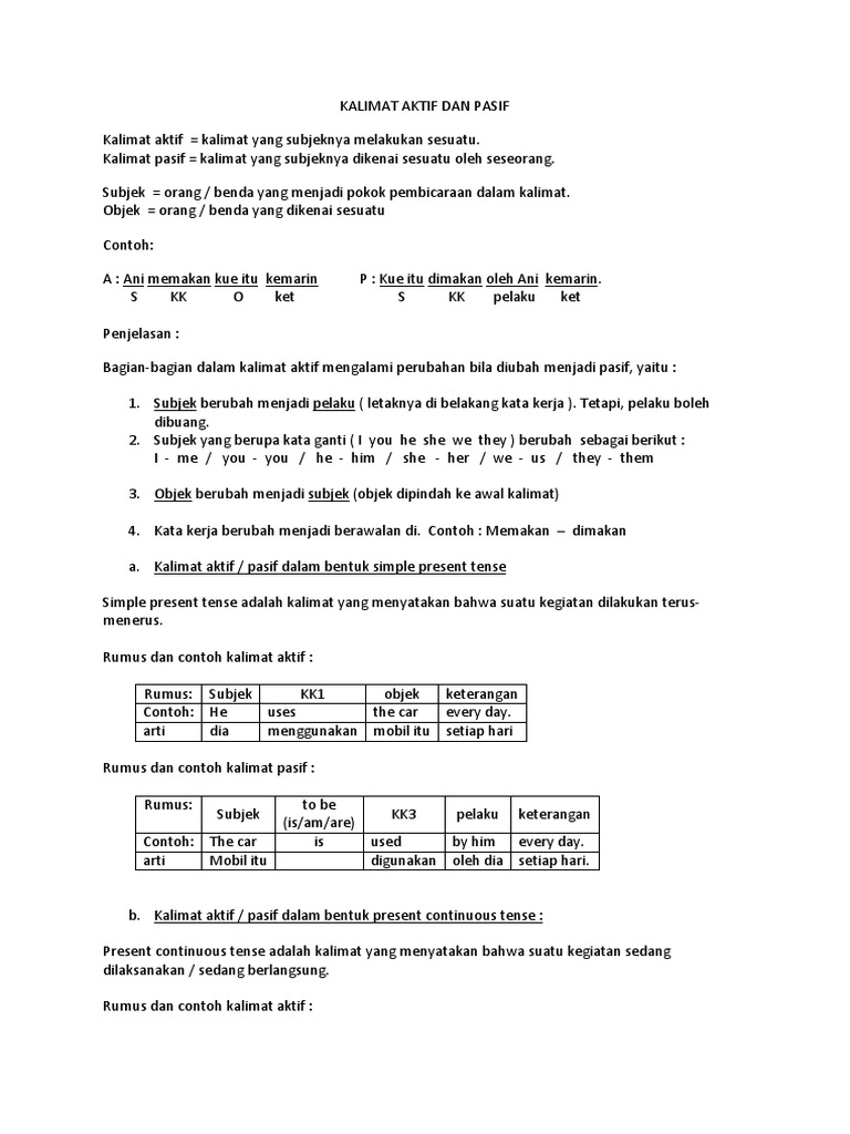 "Kalimat Aktif Dan Pasif" Pengertian & ( Contoh - Ciri ...