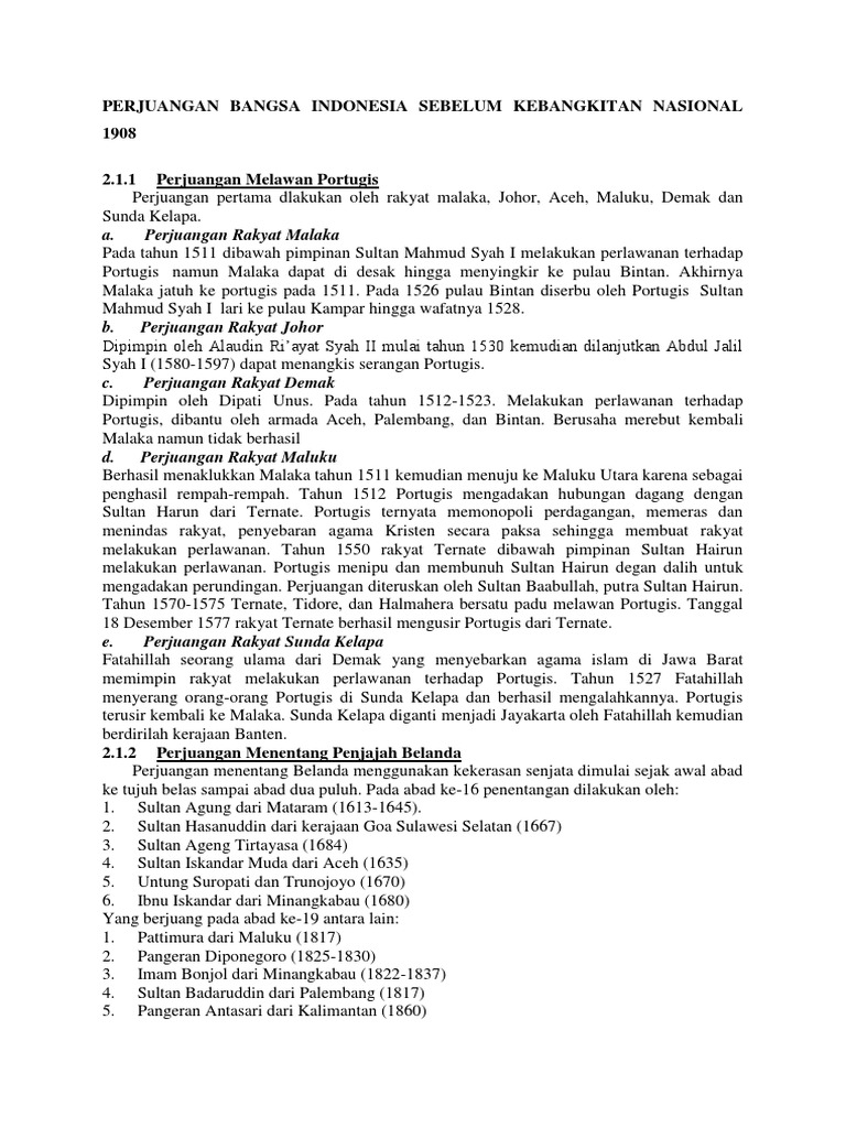 Perjuangan Bangsa Indonesia Sebelum Kebangkitan Nasional 1908