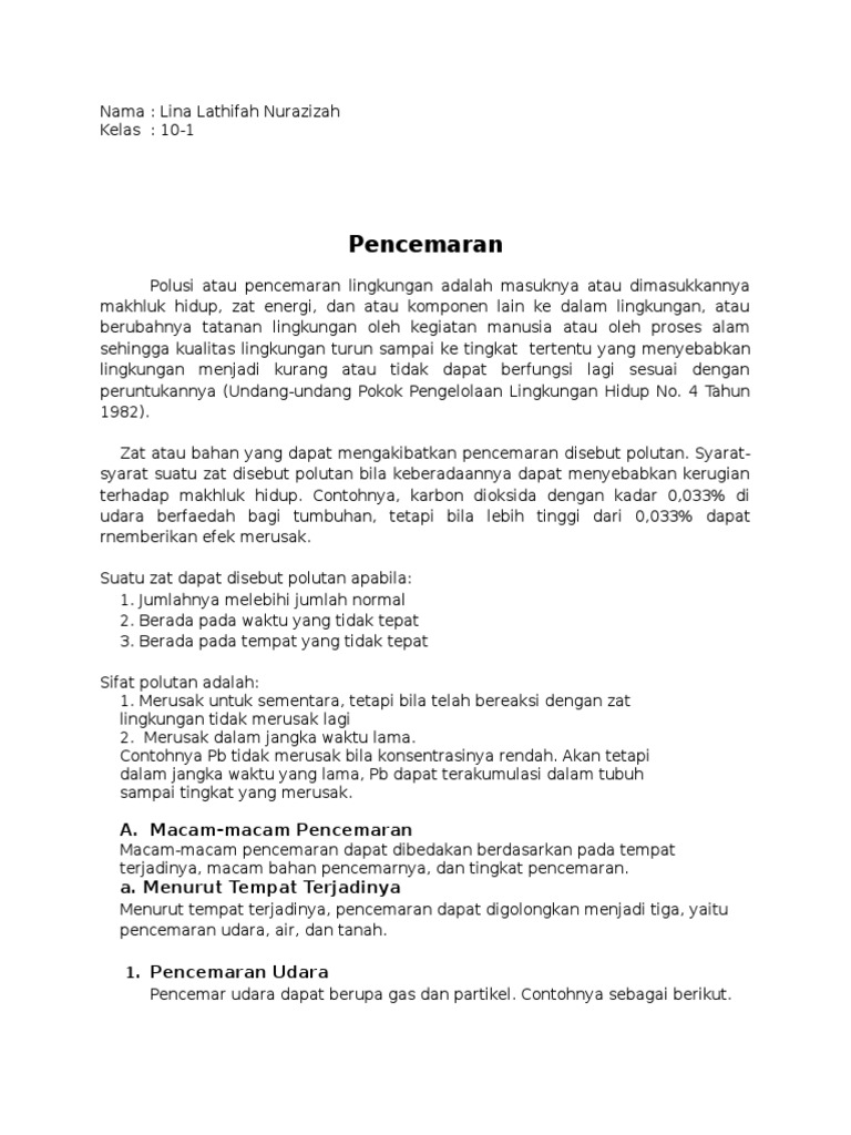 Zat- zat atau segala apapun yang masuk ke dalam air dan menyebabkan turunnya kualitas air ini disebut dengan polutan.