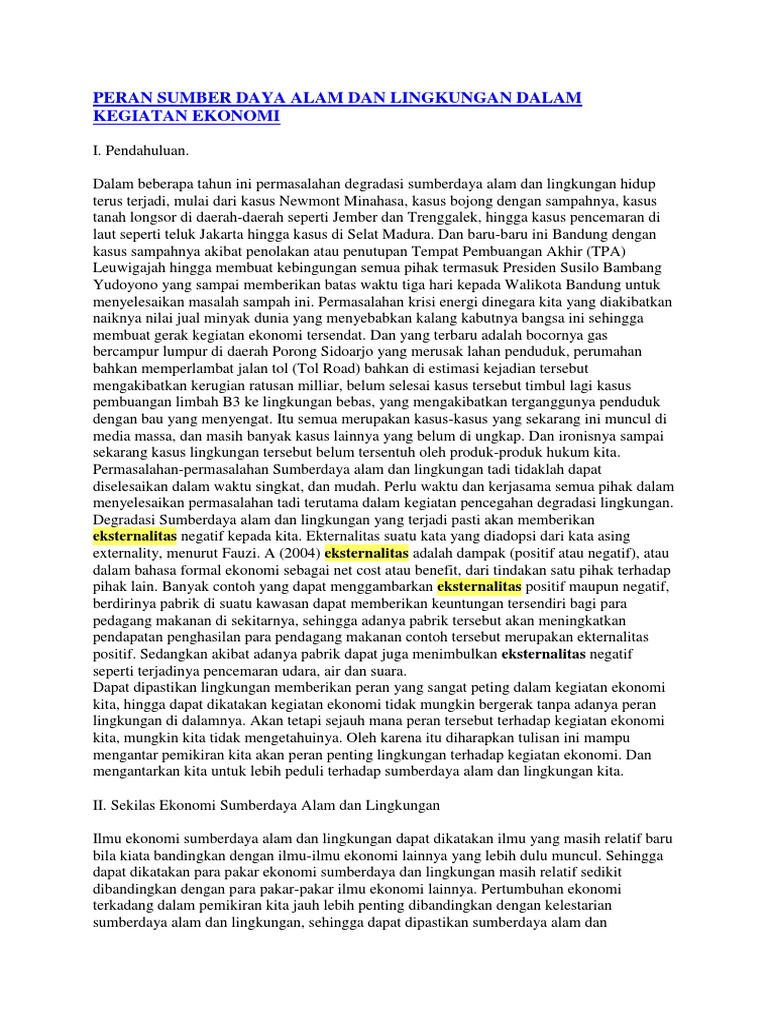 Peran Sumber Daya Alam Dan Lingkungan Dalam Kegiatan Ekonomi
