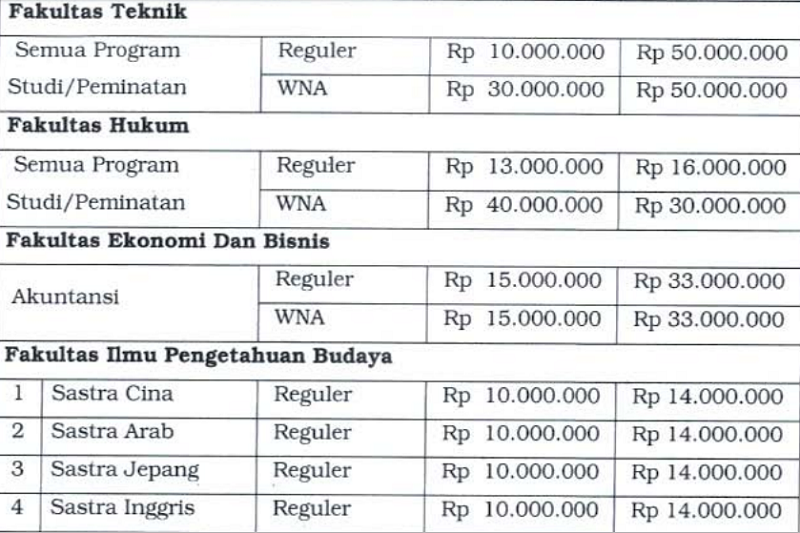 Dan biaya kuliah atau nominal untuk setiap jurusan di UI mungkin akan relatif lebih tinggi, hal tersebut wajar Agar lebih lengkapnya lai mengenai biaya kuliah UI (Universitas Indonesia), berikut dapat.
